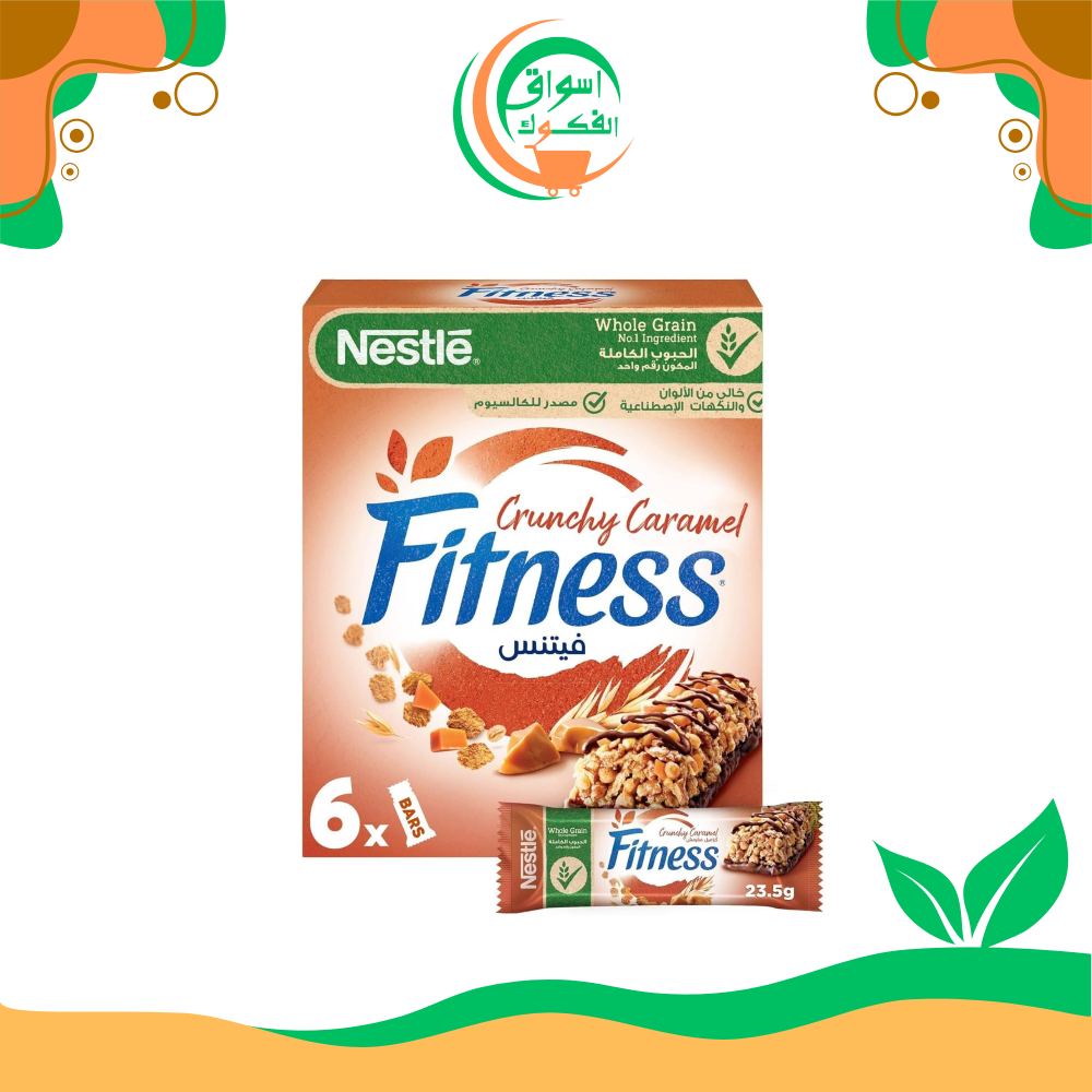 قالب نستله فيتنس المقرمش بالشوفان والكراميل، وزن اللوح 23.5 جرام، عبوة من 6 الواح.
