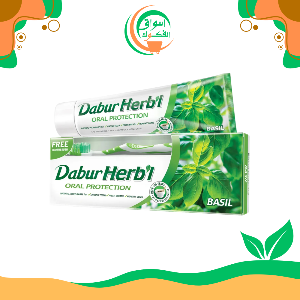 دابر معجون الأسنان الأعشاب بالريحان مع فرشاة أسنان 150 جم