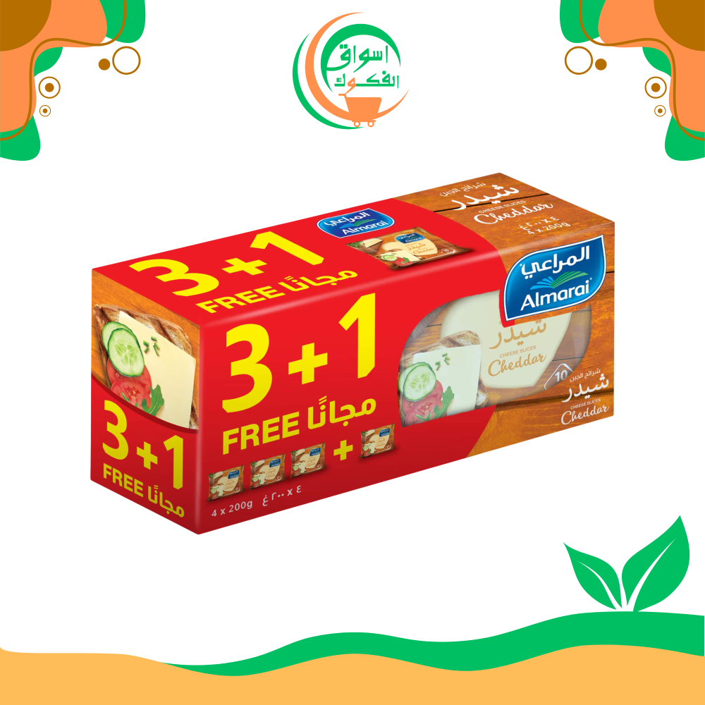 شرائح جبنة شيدر المراعي 200 غرام × 3 + 1 مجاناً